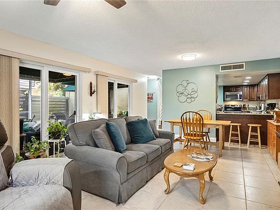 Updated 3 bedroom, 2.5 bath/townhome with new roof (2019), new electrical panel (2019), new awnings (2021), new fence (2021), and new refrigerator (2021). All kitchen cabinets/drawers have soft closures; granite countertops and stainless steel appliances accentuate the spacious kitchen. Three sets of sliding doors lead to a private screened-in patio. All windows/doors are impact resistant. Neutral tile on the 1st floor and laminate flooring upstairs; natural light throughout. One bedroom/half-bath on the first floor; two bedrooms and two full baths on the second floor. All bathrooms have granite vanity tops with neutral tiles. ALL AGES WELCOME!