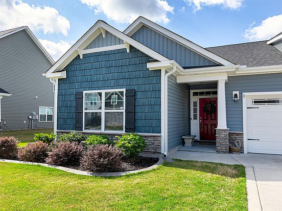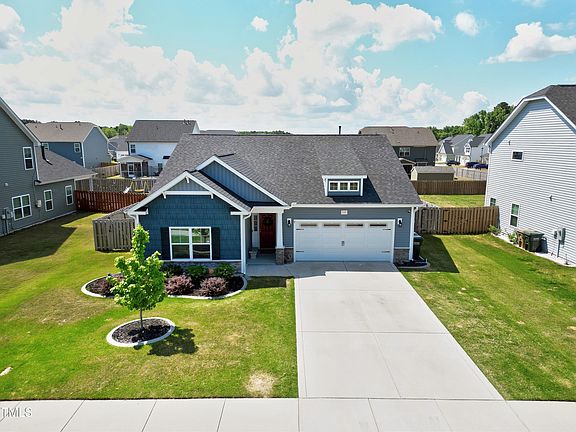Discover modern comfort in this charming 3 bed, 2 bath home. Enjoy a spacious, open living area, sunny Carolina room, and well-equipped kitchen with large eat-up island, abundant cabinets, gas range, upgraded granite and backsplash, and stainless-steel appliances. Enjoy the outdoor patio overlooking the large flat, fenced yard. The insulated and finished garage makes great space for projects. Convenient location close to shopping and just 5 minutes off US-70. Other features include a security system, ceiling fans, a natural gas fireplace and water heater, and energy-efficient windows.