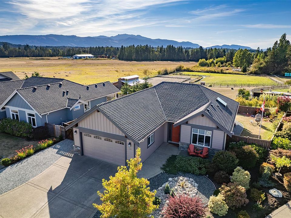 Unobstructed Mountain Views! Welcome to this beautiful ranch-style home, perfectly situated to take in sweeping, unobstructed views of Mount Arrowsmith and the surrounding ALR farmland. Designed with comfort and functionality in mind, this 3-bedroom, 2-bathroom residence features an open floor plan that flows seamlessly into a bright and spacious great room. Large windows capture the stunning west facing views, for great sunsets, filling the home with natural light throughout the day. The thoughtfully designed kitchen and living areas make entertaining easy, while the covered patio provides the ideal spot to relax and soak in the ever-changing mountain backdrop year-round. Quality-built with excellent fit and finish, this home offers a timeless combination of warmth, elegance, and practicality — all in an unbeatable setting.
