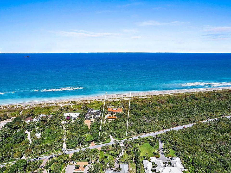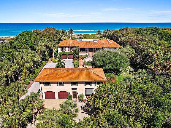 Discover the rare opportunity to own the only Jupiter Island home and property with Blowing Rocks Nature Conservancy as your southern neighbor. The parcel is superb with 134 feet of direct ocean frontage, higher elevation, and expansive shoreline. Tranquility and Privacy abound with Main Home featuring impact glass, electric shutters, & elevator and oceanfront pool plus GUEST HOUSE w/ kitchenette, artist studio, 2 car garage & covered patio. Main home features generous floor plan and spacious living areas seamlessly open to an expansive loggia showcasing the ocean, pool, and garden views. Tischler French doors open to the beautiful oceanfront terrace & pool for pure enjoyment. Formal dining room w/ picture windows that highlight the surrounding natural beauty. Culinary enthusiasts will appreciate the well-planned chef's kitchen featuring a commercial-grade 8-burner range, double oven, custom cabinetry, & butler's pantry. The primary suite offers a peaceful escape with captivating ocean views, sitting area, custom cabinetry, an expansive walk-in closet, and large primary bath. Guest wing on the first floor with large media room, bar, wine cellar, elevator, additional laundry room and separate entry. Enchanted property with gardens and courtyard that lead to the GUEST HOUSE w/ additional 2 car garage (built in 1992). Guests will enjoy their own retreat, featuring a spacious bedroom, kitchenette, full bath, a versatile gathering room or artist studio and terrace. An elegant yet welcoming feel is conveyed throughout. Close to Stuart Jetport and approximately 45 min to PBI Airport.