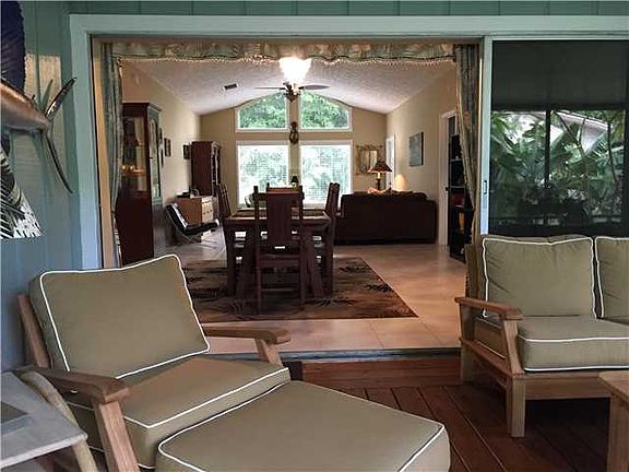 Downtown Stuart location- this home is a show-stopper! Striking 3 bedroom, 2 bathroom home w/ oversized 2 car garage nestled on nearly 1/3 acre corner lot. Lush landscaping with tropical blooms, tall palms and fruit trees create a private outdoor oasis. A brick walkway meanders to a patio adjoining an inviting screened lanai complete with cedar sauna & outdoor shower with quartz floor. An open & airy living space brings the outside in via large pocketing sliders on one end & brilliant ceiling height windows on the other. Other spectacular features: volume ceilings, tiled kitchen, living & dining room, newer kitchen stainless appliances, beautifully updated bathrooms w/mosaic inlays, large garden-tool shed with metal roof. Your dream home awaits!