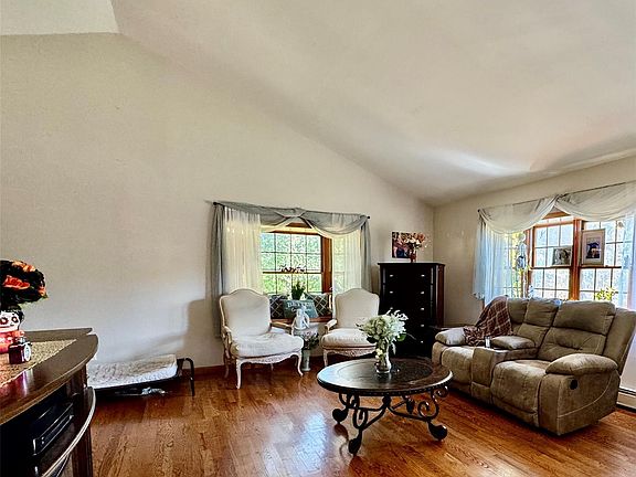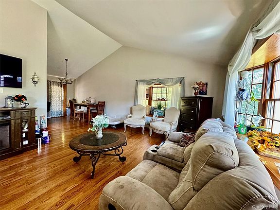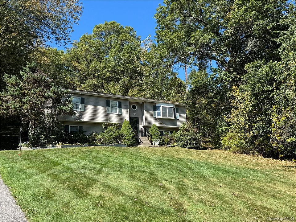 A home with great possibilities awaits you on its own private 1.9 acre homesite which borders on a forever green buffer. Features include central A/C, a furnace with 3 heating zones, and Andersen windows. The kitchen features an island, stainless appliances & quartz countertops. Hardwood flooring extends throughout the living room, dining room and hall. The bay window in the living room overlooks the sprawling front yard under a vaulted ceiling. The MBR suite includes a full bath, WIC & additional large closet. Spacious secondary BR's offer custom closets & ceiling fans. Lower level features a wonderful family room w/ woodburning stove & entertainment area, half bathroom & play room. This backyard is perfect for entertaining & includes a composite deck that extends the entire length of the house, above ground pool, and retaining walls. Desirable location, close to highways, schools & shopping.