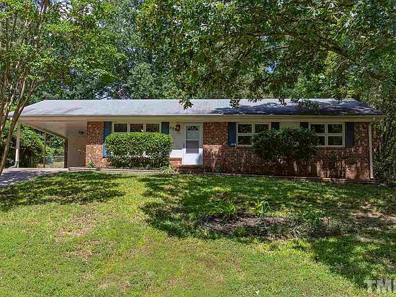 All brick ranch with carport, large deck, beautiful fenced yard, large storage unit off carport. Many improvements including manufactured hardwood in kitchen family room and hall, replaced carpet in 3 bedrooms, grilling shelter off deck, new retaining wall, freshly painted. Kitchen open to eat in area and living room. Architectural features, arched doorways. Complete list of improvements available. Convenient to services, schools, shopping, Duke, and I-40. Empty and ready for a new owner.