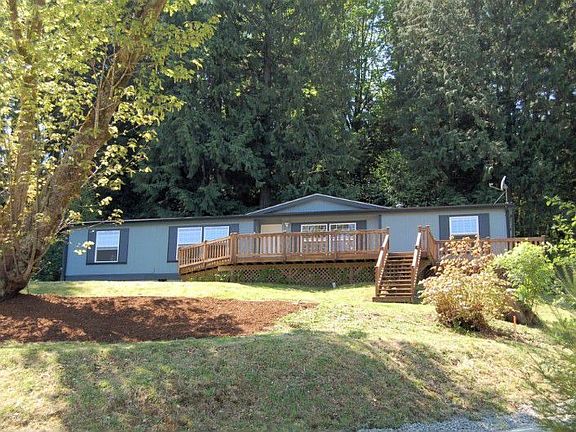 Private, quiet location is perched up high for wide open views of Lake Samish and Lookout Mt. Relax in the sun on the huge deck and drink a toast to the good life. Big one-third acre lot has grassy yard, garden space and room to park an RV or boat trailer. 3 br, 2 bathroom manufactured home is in excellent condition. Open floor plan with views from almost every room. Living room, dining room, family room with skylights, master suite with soaking tub and walk-in closet, new paint inside and out.