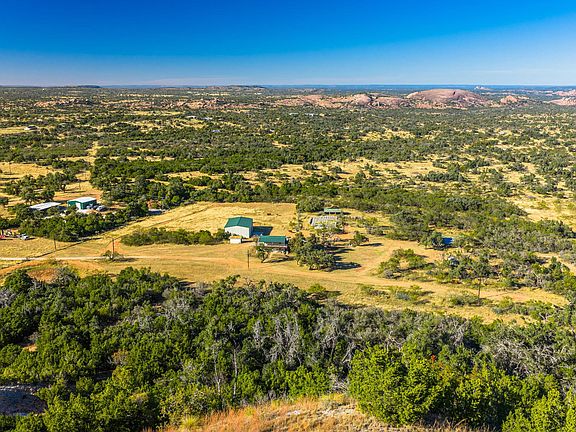Set on 257± acres with striking elevations ranging from 1,560 to 1,940 feet, this Gillespie County ranch showcases sweeping Hill Country panoramas—including exceptional views of Enchanted Rock just minutes away. The property features a 1,548± sq. ft. two-story barndominium serving as the main residence (3 bed / 1 bath), with charming beadboard finishes, updated flooring, large windows framing the landscape, and a spacious second-story deck that captures dramatic vistas. A separate efficiency cabin with a full bathroom provides additional guest accommodations or a quiet private retreat. The ranch also includes a large, fully insulated metal shop—ideal for equipment storage, a workshop, or the potential conversion into additional living space. With a water well, septic, and electricity already in place, the property is fully equipped for full-time living or weekend escapes. The land reveals true Hill Country character—ridge lines, hardwood groves, native grasses, and diverse topography—a 2.14-mile private hiking trail looping through the interior of the property. Perfect for morning walks, wildlife viewing, UTV rides, and exploring the natural terrain. Keener Branch, a seasonal creek, winds through the ranch, creating scenic pockets of shade, enhancing wildlife habitat, and enriching the overall landscape. Abundant native wildlife, offering opportunities for hunting, recreation, or simply enjoying the quiet solitude. Located just 15.6 miles from downtown Fbg and 2.6 miles (±5 minutes) from Enchanted Rock, the ranch blends privacy with outstanding accessibility—an uncommon opportunity this close to world-class destinations. This rare, expansive acreage in a sought-after Gillespie County location offers the perfect Hill Country getaway or family legacy ranch.