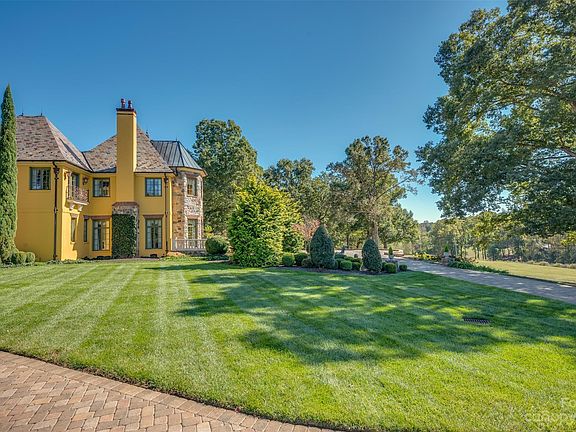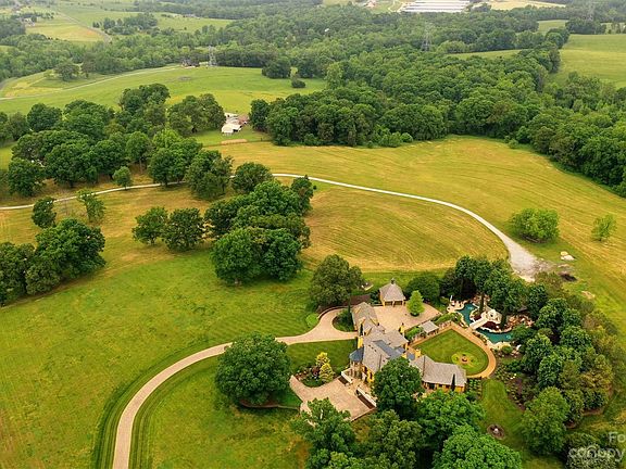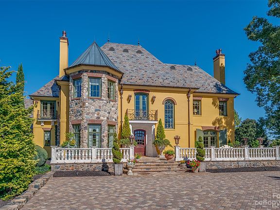 A French Country Estate nestled inside almost fifty sprawling fenced acres of rolling countryside at the edge of the mountains in Western N.C. Special finds throughout Europe were transported to this estate home to create a captivating manor house. Each artistic and architectural element has been thoughtfully & lovingly curated. The home features a slate roof w/copper guttering & copper outdoor gas lanterns. Hand-painted murals & fleur-de-lis images appear on ceilings & walls throughout the manor’s spacious interior. Furnishings & textiles were custom & specifically crafted & curated. Antique stone floors, a custom-designed dual-fuel La Cornue range that is majestically placed inside a limestone niche with a custom-designed copper hood & flanked by handmade tiles are just a few of this home’s special features. Two soothing multi-tiered waterfalls flank each side of the luscious pool, a brand new outdoor fireplace, & adjacent patios, providing an impeccable private outdoor space.