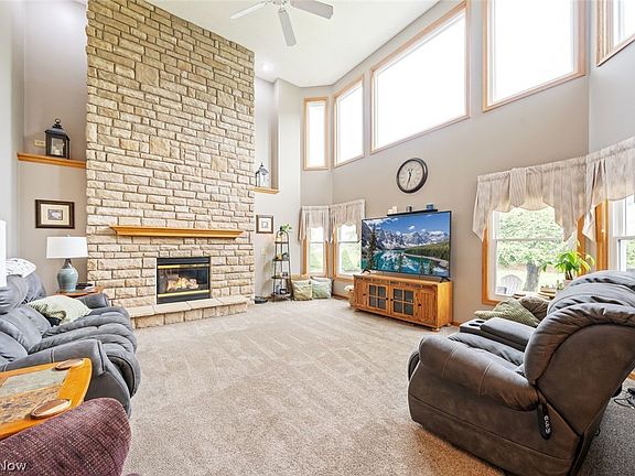 see exactly why this home is so special. Prepare for cozy Ohio winter nights in the great room. The 20 ft floor to ceiling stone gas