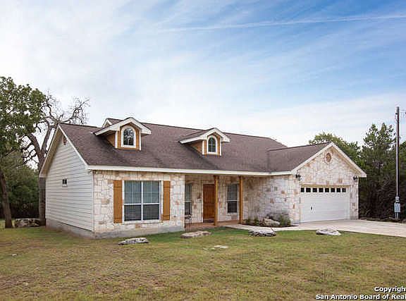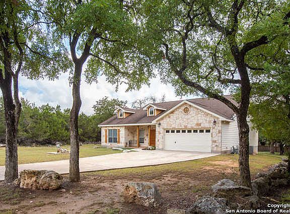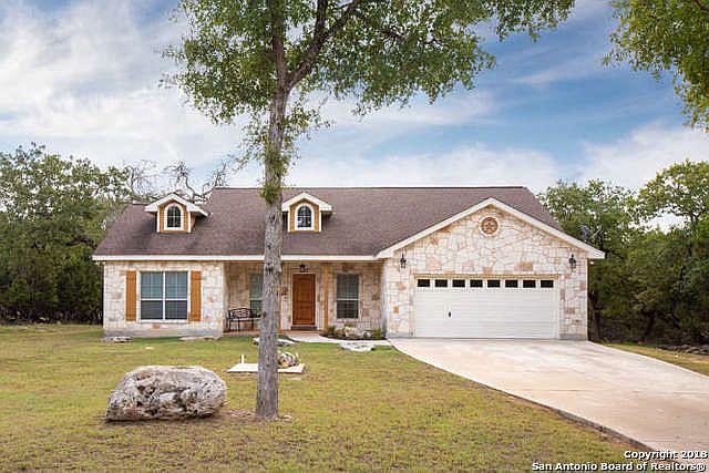 Clean, well maintained & always ready to show. 3/2/2 single story home w/high ceilings & open floorplan. Large 20x20 Family Room w/vaulted ceiling & corner FP. Big Kitchen w/island & Breakfast Bar. Microwave + smooth top oven range. Frig & water softener are included! Split bedroom layout. Tile floors w/carpet only in the bedrooms. Master has trey ceiling, closet w/storage & private bath. Double car garage w/opener. Situated on a level, 1/2 acre lot. Family oriented community & excellent Comal schools.