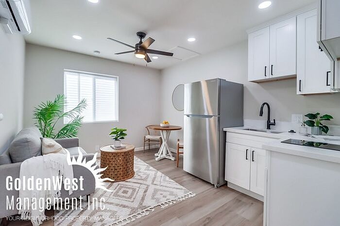 Charming Studio in the Heart of San Diego. This completely renovated studio features new laminate flooring throughout. Bathroom has cabinet space to keep your essentials organized and includes a bathtub. Kitchen comes with shaker-style cabinets, beautiful quartz countertops, induction cooktop, and a stainless steel refrigerator. Fenced private patio. You'll stay comfortable year-round with high-efficiency A/C unit. You'll have easy access to schools, restaurants, and shopping centers. $100 per month flat utility rent includes Electric/Gas, Water/Sewer/Trash and Internet. Street parking only. This property allows self guided viewing without an appointment. Contact for details.