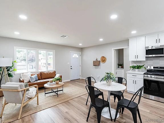 A fully renovated 2-bedroom, 2-bath single-family residence with an attached studio ADU situated on a large, usable lot. Both the main home and ADU have been comprehensively upgraded with shaker-style cabinetry, stainless steel appliances, quartz countertops, new laminate flooring, updated kitchens and bathrooms, dual-pane windows, and new HVAC systems. Each unit benefits from its own private yard, supporting flexible use for owner-occupancy, multi-generational living, or rental income. The property is zoned RM-1-3, providing additional redevelopment or density potential for future value creation. Centrally located with convenient access to major employment centers, transit corridors, and neighborhood amenities throughout San Diego.