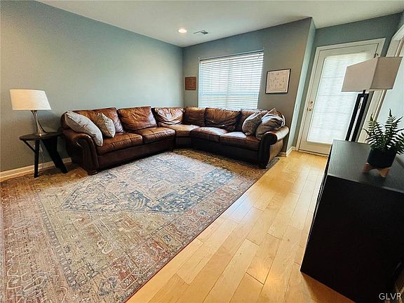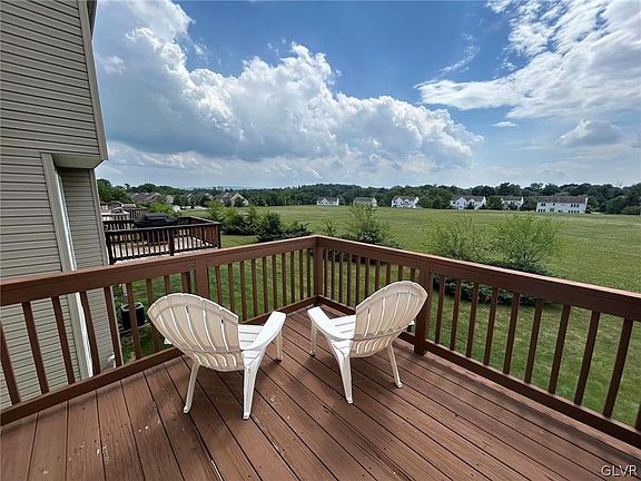 This stunning 3-bedroom, 2.5-bath townhouse in the desirable Vistas at Green Hills offers panoramic views and a prime location in the Lehigh Valley. Built in 2006, the home features an open floor plan with three stories of living space, gas heat, and central air. The gourmet kitchen boasts granite countertops and modern appliances. The second level showcases tastefully upgraded engineered wood floors. The luxurious master suite includes a soaking tub, double sinks, a stand-up shower, and a separate toilet room.