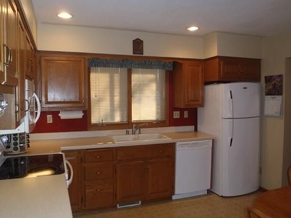 Welcome home to this warm and inviting 3 bedroom, 1 1/2 bath ranch. Spacious living and dining room with vaulted ceilings, hardwood floors, built-in book case and patio doors offering backyard views. Kitchen with new appliances, snack bar and built-in corner table. Cozy family room with patio door leading to landscaped yard with new play set. Finished lower level with built-in entertainment center and den. New roof, furnace, air conditioner, windows, and hardwood floors.