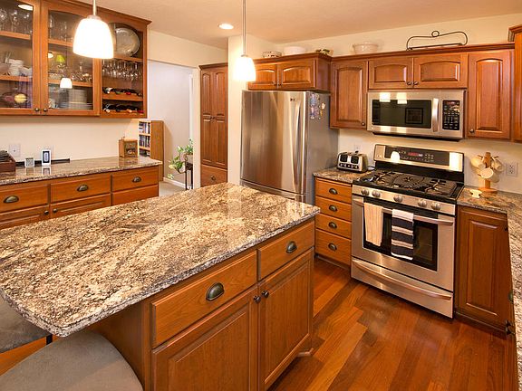 Beautifully updated Oxbow Glen home on cul-de-sac. Freshly painted exterior, remodeled kitchen with granite counters, beautiful cherry cabinets, stainless appliances, 4 bedrooms on the upper level with private master bath and walk in closet. Finished walk out lower level, large family room with gas fireplace and walk up wet bar is great for entertaining. Large deck and patio overlooking your private 18x36 in-ground pool. This backyard is a dream!