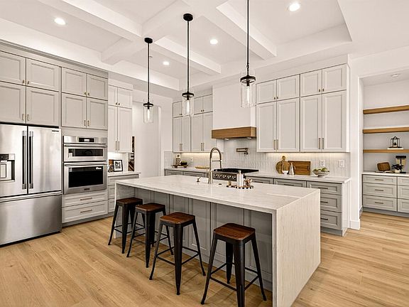 Designer finishesEpoxy-coated garage floorsQuartz-style countersAbundant natural lightModern designExpansive drivewayOpen-concept layout