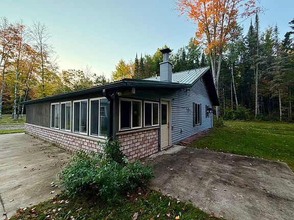 Discover this charming year-round home nestled on a peaceful, paved town road, offering ultimate privacy on 2.5+ acres. Perfect for outdoor enthusiasts, it’s close to prime fishing lakes! Sunlit and inviting, the bright sunroom with expansive windows floods the open floor plan with natural light. Built with low-maintenance vinyl siding, slab-on-grade construction, and a durable metal roof, it promises easy living. The heated garage features storage trusses for easy to access storage and its own propane tank, while the attached greenhouse allows for year-round gardening. A dedicated kitchen area off the garage is ideal for canning or can be transformed to suit your hobby needs. Additional conveniences include two storage sheds and a classic outhouse. The property is served by a private holding tank, a circular drive with plenty of space for a future garage, workshop, or expansion of all three :) A versatile Northwoods retreat at a reasonable price - your perfect escape awaits!