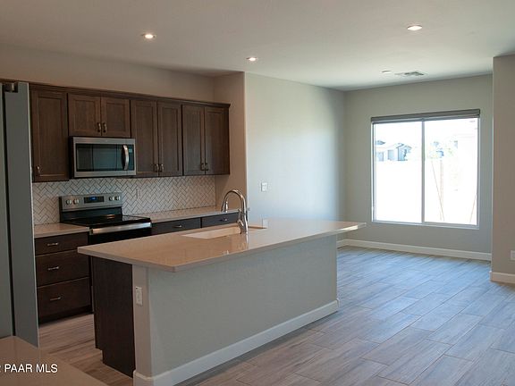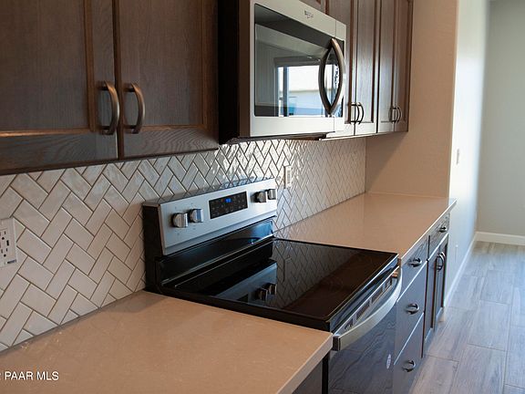 TURN-KEY NEW BUILD! SOLAR! Adorable 2 bedroom 2 bath with OVERSIZED garage, built by Mandalay Homes at THE DELLS. Enjoy low utility bills & eligible tax rebates! This energy-efficient home features gorgeous wood-look tile floors throughout and a warm and inviting kitchen. Popular quartz countertops with a beautiful herringbone laid tile backsplash all paired with warmly stained wood cabinets featuring oversized drawers. The owner's bath features a large walk-in shower that is a statement all its own with beautiful subway tiles and polished pebble floor. Throughout the home you will find two-tone paint & window coverings in all the right places. A large covered patio is just right to enjoy the perfect Prescott weather.