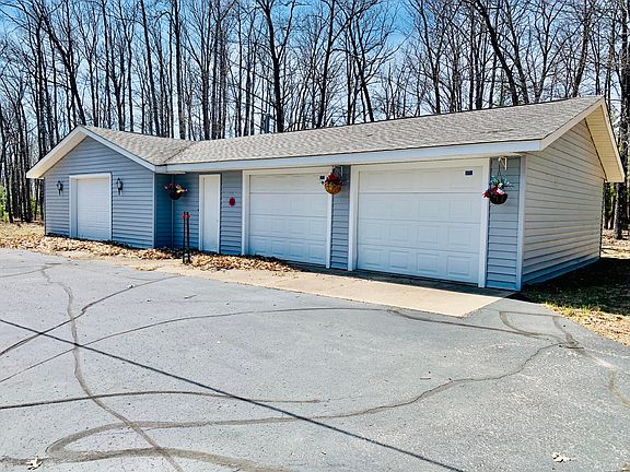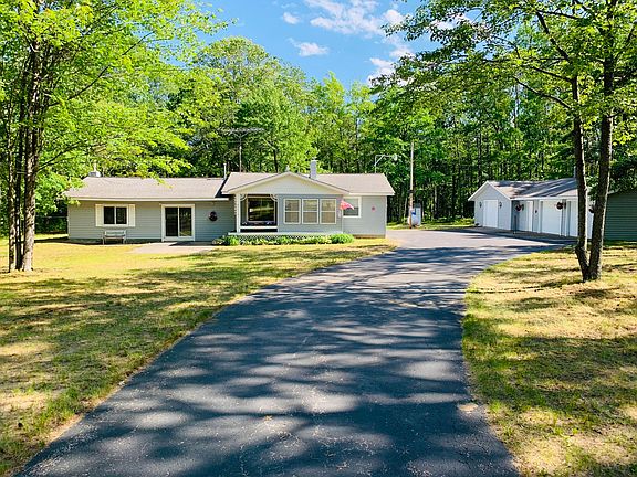 53 +/- acres of nicely wooded property bordering state land to the east and across the county road with hunting and snowmobiling at your front door. Well maintained 1500 sq. ft. home featuring 2 bedrooms, a large great room for family gatherings, and hot water heat. Enjoy the 3 car garage big enough for all the toys, one stall heated. Trails throughout. AuSable River and several lakes within a short drive. Located between Mio and Lewiston. $169,700.00 MLS# 323640