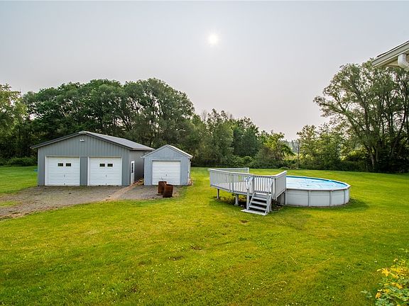 ***MUST SEE*** Sprawling ranch on gorgeous country lot in Webster School District!! Updates include NEW furnace 2020, air conditioner 2019, and hot water tank 2018. Second driveway provides access to HUGE barn and shed. The newer 24' x 32' pole barn with a pellet stove also offers an additional 22' x22' of workspace connected by bay door (1,252 SF Total!). Interior of home is beautifully maintained throughout. Grand living room boasts cathedral ceilings, cozy gas fireplace and large windows to enjoy the view. Sliding glass doors lead to spacious deck and beautiful backyard. Additional deck compliments an enticing above ground pool for summer entertaining. Full finished basement offers tons of extra living space perfect for rec room/office/gym.