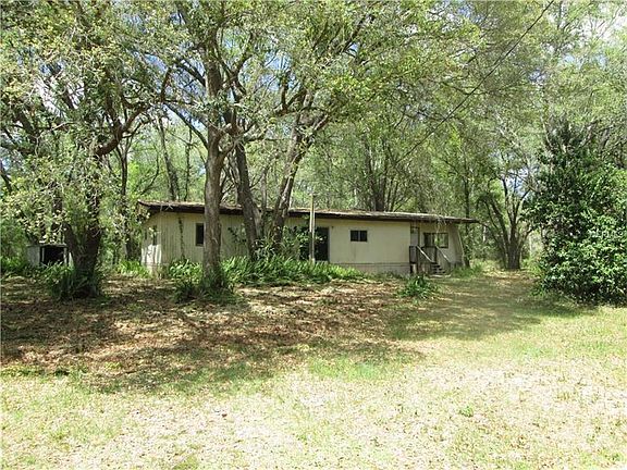 House on over 6 acres w/spring fed pond.3 bedrooms 2 baths, formal living & formal dining area. Kitchen in center of the house joining family room and dinette area. Master on one side, with glass sliding doors to the screened in lanai. Big out building w/cement floor. Located at the end of the road, so enjoy your privacy.