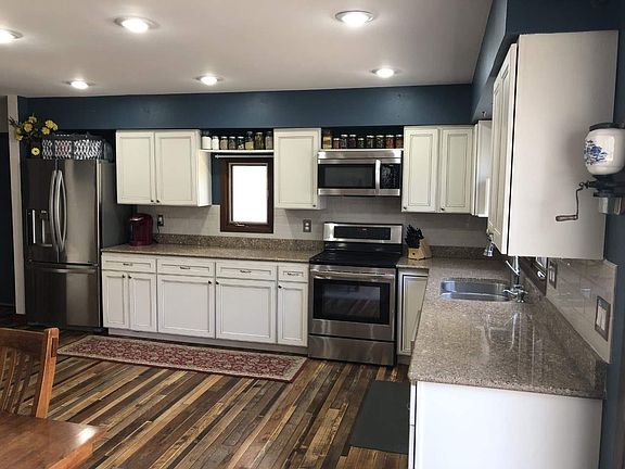 Nicely updated ranch located in a desirable subdivision. Enter the home and admire the custom reclaimed wood flooring thru-out the main level. Completely renovated open concept kitchen and dining room. Recessed lighting, new cabinets,stainless steal appliances, sink, faucet, quartz counter top, soft close drawers and cabinet doors. A spacious master bedroom and second main floor bedroom offer excellent main floor function. Main floor full bathroom with double sinks.Enjoy a mostly finished basement that has loads of natural light. Huge family room with wood fireplace is great for relaxing or entertaining. Two additional bedrooms in the lower level along with another full bathroom and an unfinished laundry utility room complete the home. The exterior of the home has two large storage sheds with electricity. A fully fenced back yard with a fire pit and a fenced garden. Home Warranty Included! HURRY, this home will sell FAST! Seller is a licensed Realtor in the State of Wisconsin.