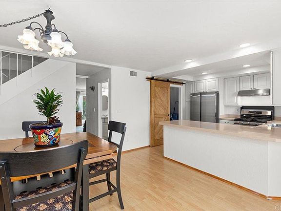 Welcome to 5273 Mt Alifan Drive in vibrant San Diego, CA! Nestled within the sought-after Pacific Bluffs community, Clairemont's hidden gem. This spacious single-family attached home boasts one of the largest floor plans available, a layout that rarely graces the market. Step inside to discover a beautifully maintained residence featuring four generous bedrooms and three well-appointed bathrooms. Spanning 1,892 square feet, this home offers ample space for comfortable living. The recently updated kitchen is a true delight, showcasing new appliances and fresh paint, all complemented by laminate flooring that extends into the dining area. The inviting dining area is enhanced by a cozy fireplace, perfect for hosting gatherings or enjoying a quiet evening. Practicality meets style with the inclusion of a pantry and a dedicated laundry room, complete with a washer and dryer. Sunlight streams through dual-pane windows and two large sliding doors in the upstairs bedrooms, creating a bright and airy ambiance. Unique features like sliding barn doors in the kitchen and main floor bedroom add a touch of rustic charm. The home's functional design includes a very large storage area under the stairs, a convenient half bath downstairs, and two full baths upstairs, including the main bedroom. Step outside to your private retreat—a large patio with a built-in storage shed and an outdoor bar counter seamlessly connected to the kitchen window. The property also offers a two-car covered carport, ensuring ample parking space. Living here, you are conveniently located near a variety of restaurants and shopping options, making daily life a breeze. Plus, the proximity to the beach allows you to enjoy sun-soaked days by the ocean with ease. Residents of Pacific Bluffs enjoy an abundance of amenities, including an Olympic-sized pool, children's pool, a brand-new playground, and a spacious clubhouse with a kitchen, reading room, game room, and gym. Outdoor enthusiasts will appreciate the grills with picnic areas, shuffleboard, and more. The community also conveniently includes cable with Disney and HBO, along with internet services. This home is more than just a residence; it's a lifestyle destination awaiting its next chapter. Don't miss the opportunity to make this rare gem yours!