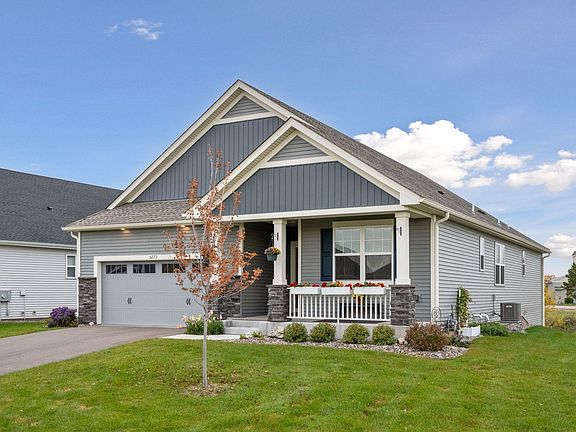 Welcome to this impressive 4 bed, 3 bath villa-style home. Built in 2020 and meticulously maintained, this home is better than new construction as it includes window coverings, appliances, gutters, and landscaping. The open-concept design invites you in, featuring a spacious center island, cozy gas fireplace, and an elegant formal dining room. Walkout from the dining room to the covered deck perfect for relaxing. Three bedrooms plus laundry on the main level provide versatile living options, and the recently upgraded pantry adds a modern touch. The oversized owner's suite includes a private en-suite bath with a walk-in shower and double vanity sinks, and a generous walk-in closet. You will love the sprawling lower level which features a rec room, a fourth bedroom, and a full bath. This home has ample storage throughout, including multiple lower-level storage rooms. Located on a corner lot with quick access to walking paths, parks, and just minutes from downtown Rogers.