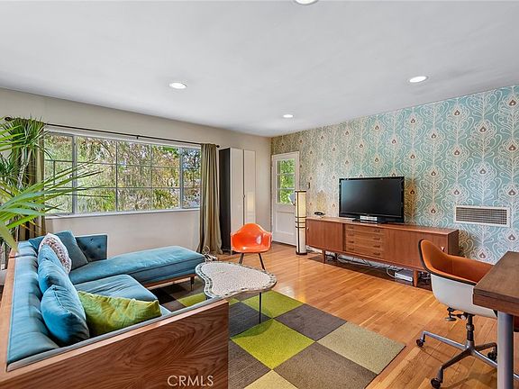 This large one bedroom one bath townhome in Historical Village Green has been tastefully updated over the past few years, with colors and décor reminiscent of the era in which the property was designed. Built on 68 acres of parkland, the original architect, Reginald D Johnson, created an oasis as a West Coast tribute to the urban Greenbelt Movement. For all of the history buffs, the present site, was once a part of the original Rancho Cienega land grant from the King of Spain. E.G. "Lucky"; Baldwin had purchased the property through his daughter & lent his name to the project, which became known as Baldwin Hills Village. The complex was skillfully designed where each building has no more than a handful of units, laid out facing a sprawling park view with a "no cars interior"; of winding pathways & over 1500 trees & beautiful nature, yet you reside in the heart of the city of Los Angeles. Enter into the townhome with architectural detail preserved from Johnson's original design. Stylish, modern wood detail is reflected in the wood paneled entryway with wood railing staircase & natural light streaming from above. This home includes an updated Kitchen with crisp white cabinets, marbled quartz countertops, mosaic backsplash dishwasher, new faucet & sink. The light-filled dining room is situated between the kitchen & large living room, which overlooks the garden court. The bedroom & living room windows have lush treetop views which allow beautiful, natural sunlight to stream in throughout the day. The bedroom & dining room include ceiling fans. The unit is freshly painted; the owner remodel includes new lighting & fixtures throughout. The living room, dining room & bedroom have natural hardwood floors, modern linoleum in the kitchen. The bathroom includes original white square tiles & historically sensitive updates. The many storage areas include two bedroom closets, a linen closet & a large utility closet with space for a washer/dryer. This unit has outdoor space galore. In addition to the peaceful upstairs balcony, there is a private patio where you can relax, dine al fresco, or create your own secret garden. It also comes with a private enclosed garage & additional off-street parking. This historical community is part of the Mills act contract with property tax benefits & sits on 68 acres which hosts community events such as concerts on the green, outdoor movies, & more. Centrally located between USC, the Expo line, Culver City, Whole foods Market.