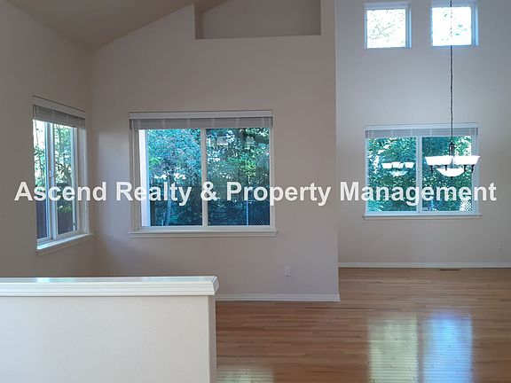 Gorgeous 4 bed, 3 bath with full bath & bedroom on main floor. Great for multi generational living. Newer interior paint. Hardwood floors on main. Soaring 25 ft ceilings in dining room. Family room has gas fireplace and slider door to fenced back yard with covered patio. Kitchen has tile counters and includes dishwasher, refrigerator, microwave/convection oven, oven and gas cooktop. Large pantry. Kitchen island provides additional counter space and storage. Main floor laundry includes washer & dryer. 2 car attached garage with opener. Home has solar panels - electric bill very low. Extra large master bed has ceiling fan & walk in closet. Soaker tub and double sinks in master bath. Forced air gas heat & central AC. ADT security system available (resident would need to sign up for service).No smoking/vaping. 1 small (25lbs or less) dog or cat with $50/month pet rent. Resident responsible for all utilities. Yard care included. Wismer/Stoller/Sunset
