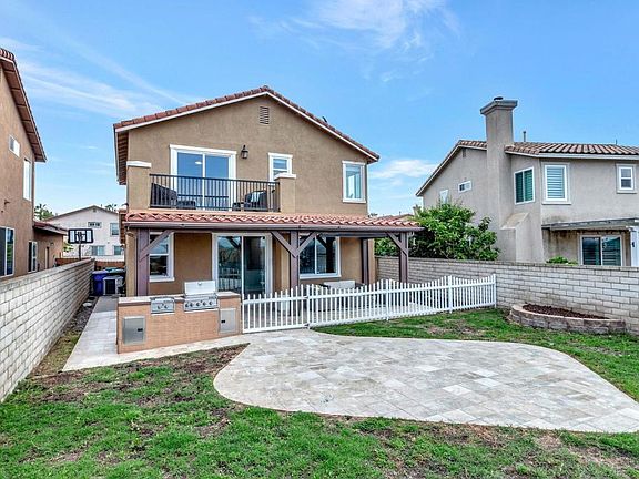 Spectacular canyon/mountain views abound! You will fall in love with the light and bright living room and dining room that are perfect for entertaining friends and family with open concept living spaces and beautiful tile flooring! The large kitchen is a chef's dream come true with stunning quartz countertops, deep sink with built in cutting board, stainless steel appliances, pantry and more. Imagine summertime BBQ's in the back yard with even more stunning views, oversized covered patio, built in BBQ & extra entertaining spaces! There is even a dog run! Venture back inside and make your way upstairs where you will find three large bedrooms and full size laundry room! The huge primary suite with private balcony is the perfect place to let the stress of the day melt away! Don't miss the giant walk in closet, updated bath with separate shower and soaking tub, quartz countertops and more! The interior of this home has just been freshly painted top to bottom with new upstairs carpet and energy efficient LED lights installed! Additional upgrades include central AC/Heat, crown molding upstairs, huge two car finished garage and storage shed! Don't miss out on this once in a lifetime opportunity!