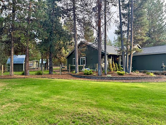 This 1,531 square foot home, built in 2002, features four bedrooms, two bathrooms, and an attached garage with ample storage. Interior highlights include laminate flooring, carpeted bedrooms, vaulted ceilings with ceiling fans, and a propane fireplace in the living room. The heat pump offers both heating and air conditioning. The kitchen is equipped with granite countertops, stainless steel appliances, and a gas range. The primary bedroom features an en-suite bathroom with a walk-in tiled shower. The home has a new roof installed in 2023. The 1.01 acre is fully fenced and landscaped yard includes front and back sprinklers and additional storage buildings.