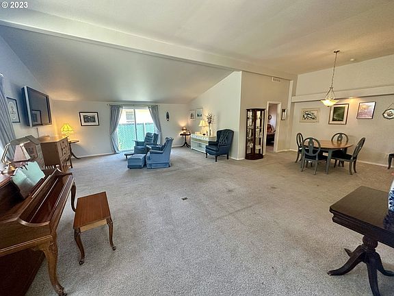 NEW PRICE! The front siding has been repaired and painted. Take advantage of $5000 toward new carpet or closing costs. SELLER IS MOTIVATED! Welcome to West Eugene Village, where you'll discover this spacious and inviting 2006 home! This property boasts an open concept design that offers endless possibilities for you to transform it into your dream haven. As you step inside, your eyes will be drawn to the generously sized kitchen, complete with an oversized island that's perfect for meal preparation or casual dining. The kitchen also features incredible cabinet space, ensuring you'll never run out of storage. Whether you're a culinary enthusiast or love hosting gatherings, this kitchen is sure to impress. Vaulted and high ceilings throughout the home enhance the overall sense of openness. With three generous bedrooms and two bathrooms, there's plenty of space for many situations. A finished garage provides extra storage or the potential to work on hobbies year-round. The small yard means easy maintenance, allowing you to spend more time enjoying your life. Don't miss the opportunity to make this great property your own.