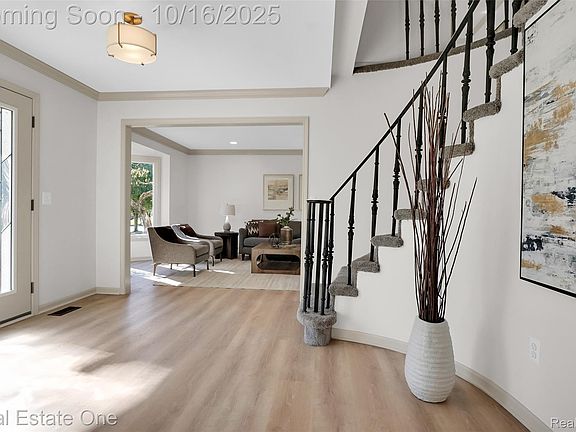 Elegant 2025-renovated West Troy Colonial, located in the highly regarded Troy School District, this home has been thoughtfully updated with all work completed under city permits by licensed contractors. Enjoy a spacious living room, dining room, and a large family room with a cozy fireplace, perfect for family and friend gatherings. The completely redesigned kitchen features new cabinetry, quartz countertops, stainless-steel appliances, a double oven, stylish tile backsplash, under-cabinet lighting, and a new pantry with an appliance garage and pull-out drawers. A sleek wet bar with a wine refrigerator adds a touch of elegance. Three beautifully updated bathrooms showcase new tiles, cabinets, tub/showers, and fixtures, with the primary bathroom offering a spacious walk-in shower with Euro glass doors. The primary bedroom includes a custom organizer in the oversized walk-in closet. High-quality luxury vinyl tile graces the first-floor living areas, paired with a large first-floor laundry, a new double front door with decorative glass, and a spacious new deck in the private backyard. The home is freshly painted in modern neutral tones, with new hardware, light fixtures, and recessed lighting throughout the main areas and kitchen. Upgrades include new plumbing, electrical outlets, and switches, a finished and painted garage, and an updated sprinkler system with a new programmable control box. The basement is newly painted and waterproofed with a lifetime warranty, and the exterior boasts refreshed landscaping and completes this move-in-ready home.