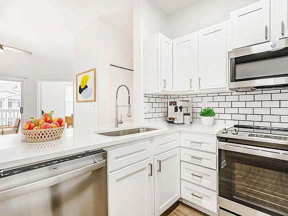- Exterior features: *Features Vary by Apartment, Barbecue, Breakfast Bar, Brushed Nickel Hardware, Built-in Computer Desks, Designer Pendant Lighting, Fire Pit, Garden-Style Soaking Tubs, Gas Fireplaces, High-speed Internet Ready, Plush Carpeting, Recessed Lighting, Stainless or White Appliances, Subway Tile Backsplash, Undermount Sink With Gooseneck Faucet, Volleyball Court, White Shaker or Traditional Cabinets, Wide Plank-Style Flooring