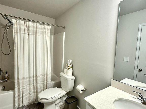 - Primary bathroom has a dual vanity with walk-in shower