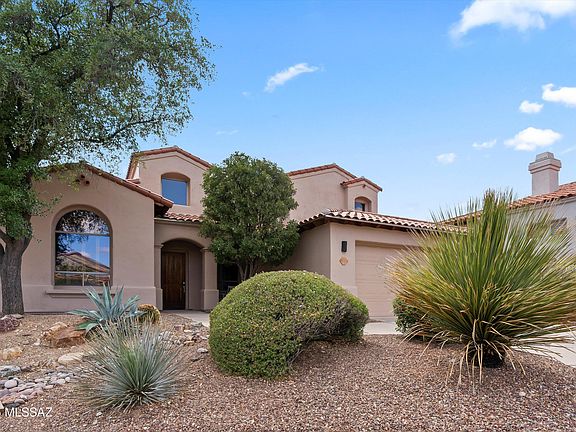 THIS IS A MUST SEE HOME! Meticulously maintained 3 bed plus den, 2.5 bath former model home is located in the prestigious, guard-gated Sabino Springs community, home to Arizona National Golf Course.Enjoy peace of mind w/ close to $200k in recent upgrades: NEW HVAC, NEW roof w/ upgraded underlayment (5-yr wnty), NEW carpet, FRESH interior & exterior paint, UPGRADED windows, & custom shutters. The chef's kitchen features Maple cabinets, granite countertops, SS appliances, ALL NEW gas stove, dishwasher, microwave, oven, & NEW cast iron sink and faucet.Elegant Saltillo tile floors, all-tile showers, soaking tub, & NEW toilets add to the luxury. The spacious primary suite is conveniently located on the main level & offers a walk-in closet W/ California Closet organizers & a private outdoor sitting area leading to a covered flagstone patio & built-in BBQ perfect for entertaining. The additional bedrooms are located upstairs, providing privacy & separation, along w/ a walk-in attic for extra storage & convenience.