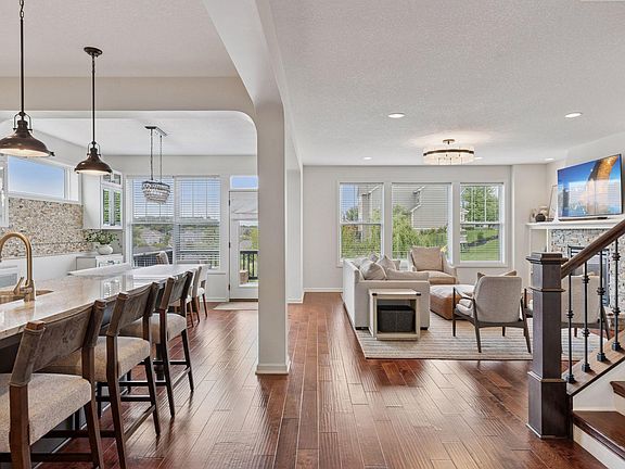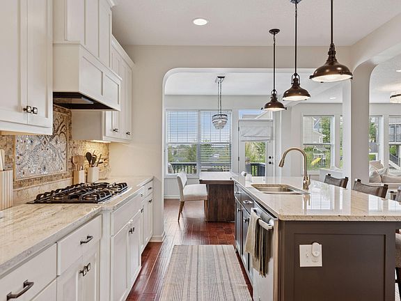 Welcome to this beautiful two-story home in a great Plymouth location! Sitting on a fantastic lot, this home has plenty of space with 5 bedrooms and 5 bathrooms, plus thoughtful updates throughout. The open main level is made for both everyday living and entertaining, featuring a gourmet kitchen with stone countertops, stainless steel appliances, a gas cooktop, and a huge center island. You’ll also find formal and informal dining areas, a walk-through butler’s pantry, a cozy living room with gas fireplace, a half bath, and a flexible bonus rooms. Upstairs, the spacious owner’s suite has French doors, a large walk-in closet, and a private bath. The upper level also includes two bedrooms with a Jack and Jill bath, another bedroom with its own private ensuite, and a bonus room. The finished walkout lower level offers even more space with a large family room, a fifth bedroom, and a 3/4 bath. Outside, enjoy the maintenance-free deck, spacious patio and the private fire pit surrounded by a beautifully landscaped yard. Conveniently located near parks, shopping, dining, and with easy access to the highway, this home truly has it all.