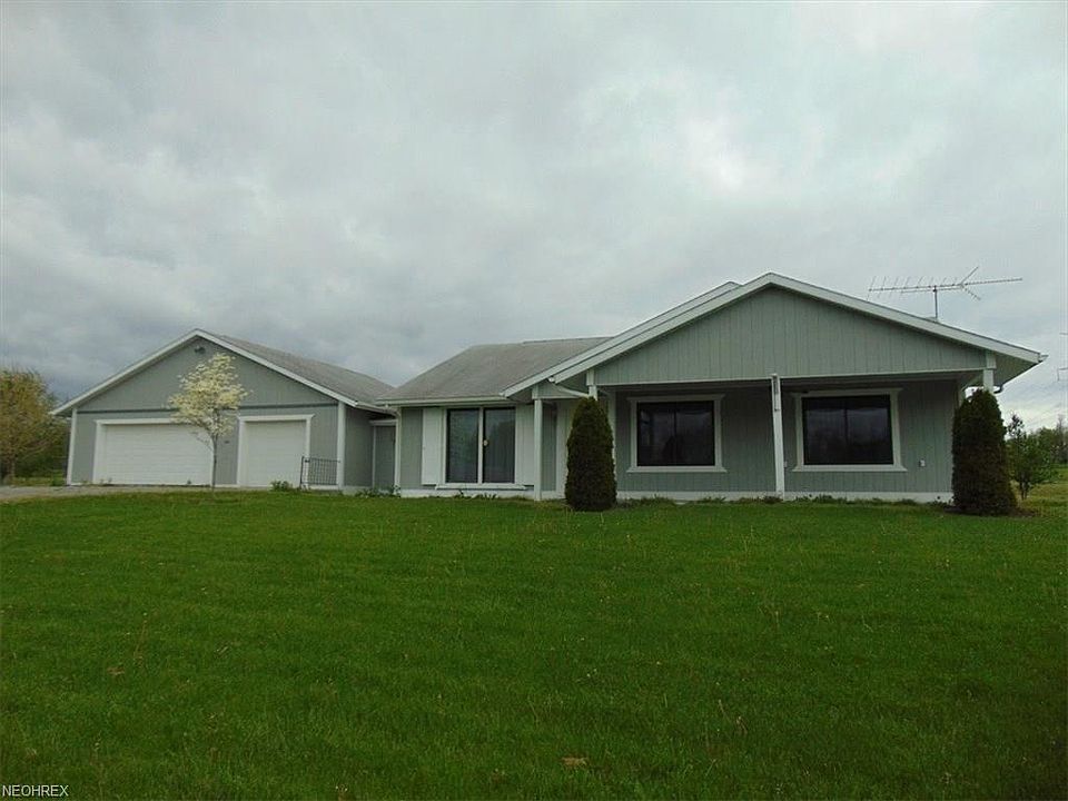Tucked away on 6.27 acres, you will find this cozy ranch home featuring one floor living! Built in 2005, this home has a nice sized kitchen with lots of cabinets/countertops and recessed lighting. Great views of the treed yard from all windows. Lots of light with oversized windows. Office. 2 bedrooms and 2 full baths. Living room, first floor laundry room. The full basement is ready for your finishing touches! Breezeway leading to oversized 3 car garage. Front porch area. The 80x36 outbuilding is a Mechanic's Dream! Outbuilding features a bathroom. Several tall garage doors could house a RV, big trucks, you name it! The lot could be split off into another parcel for building another home. Come see this peaceful property today!