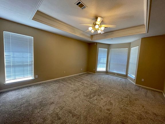 This three bedroom, two bath home is located in Beaumont near Folsom Drive. This home has central A/C unit. There is a spacious living room with a fireplace. The kitchen has a stove, dishwasher, refrigerator, and microwave. There is a dining space off of the kitchen, as well as, doors that lead to the fenced-in backyard. The master bedroom has a bay window, as well as, a jetted tub and separate shower in the bathroom. The house also has a a covered entryway and a two car garage. Pets are accepted on a case-by-case basis with owner approval.