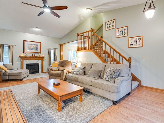 Lovingly cared for single owner home has FULL, partially finished basement w/ recessed lighting & ample storage in custom cabinetry. Open floor plan features staircase that artfully overlooks the great room, large front picture window, and a kitchen outfitted with SS appliances that opens onto the great room. Convenient first floor laundry off the kitchen. Room for a cozy sitting area by the gas log fireplace. Large deck (w/ extra storage space beneath) is perfect for outdoor entertaining. Yard is a delight w/ beautiful garden, well-kept fence, irrigation system for watering plants along fence, and a shed for even more storage space. Roof between 10-15 years old.