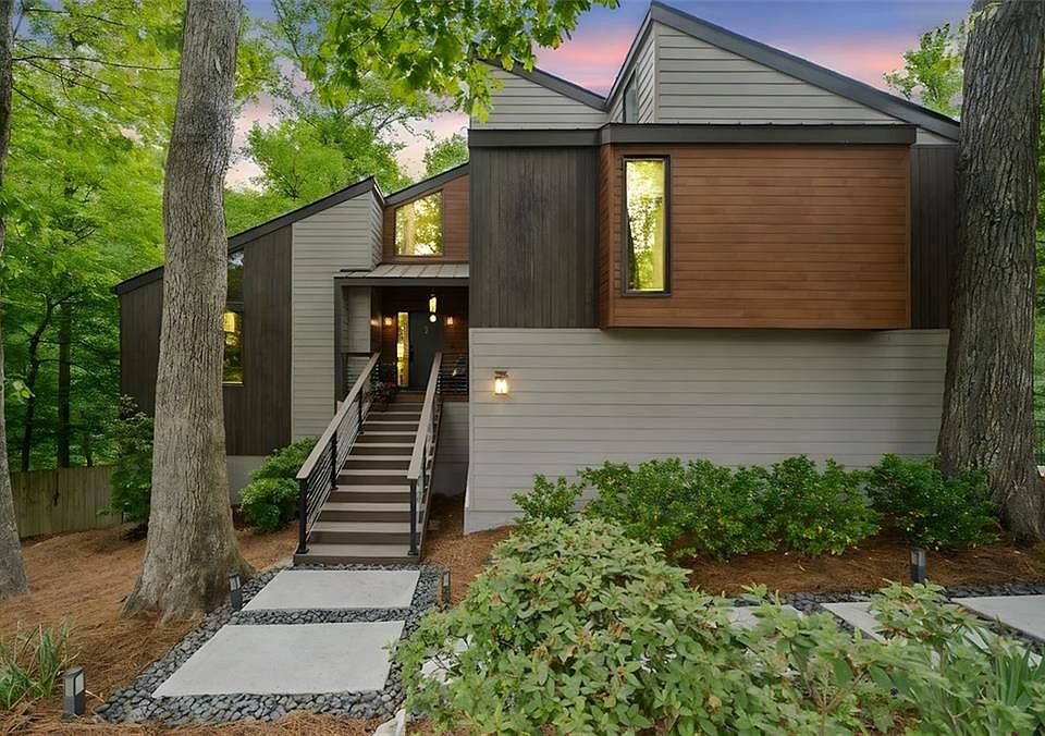 Welcome to one of Willow Point’s most distinctive and architecturally striking homes—custom designed and meticulously renovated to blend modern contemporary design with everyday livability. Nestled at the end of a private cul-de-sac in one of East Cobb’s most coveted swim/tennis communities, this one-of-a-kind residence is a true showstopper. Every inch of this home has been thoughtfully curated, with no expense spared. From the brand-new HardiePlank siding and triple-paned energy-efficient sash windows to the roof (less than 2 years old), the exterior is as refined as it is durable. Multiple expansive Trex decks provide seamless indoor-outdoor living, with views of a lush, professionally landscaped backyard, fenced for privacy and centered around a serene creek and glistening pool—your own private resort. Inside, bold architectural elements take center stage: a dramatic sunken conversation pit with a statement double-sided fireplace, soaring ceilings, sleek finishes, and a primary suite that stuns with its own spiral staircase—a truly unexpected and artful design feature. Set within the award-winning trifecta of schools—Mount Bethel Elementary, Dickerson Middle, and Walton High—this home offers not only unparalleled style, but also unmatched educational opportunities. For the discerning buyer who appreciates originality, craftsmanship, and a lifestyle of elevated living—this home is more than just a property. It’s a masterpiece.
