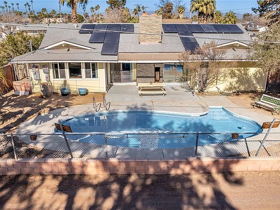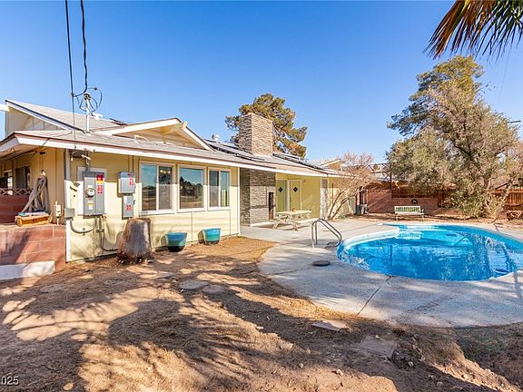 Step into your dream home—a gorgeous 3-bedroom, 2-bath oasis in the heart of Las Vegas, perfectly positioned along the lush fairways of Desert Rose Golf Course with NO HOA! This stunning retreat boasts a breathtaking backyard, featuring a sparkling inground pool, a covered patio, and ample space for outdoor enjoyment. Inside, the sunken living room radiates charm, while upgraded windows, ceiling fans, and two powerful HVAC units ensure comfort year-round. The primary suite offers dual closets, while a Jack-and-Jill bathroom maximizes convenience. The fully equipped kitchen is ready for culinary adventures, and energy-efficient upgrades like solar panels and a tankless water heater keep costs low. Enjoy peace of mind with security cameras, a dog run for pets, and a 2-car garage with ample storage. An exterior chimney adds charm, and you’re just minutes from shopping, freeways, and entertainment. Schedule your tour today!