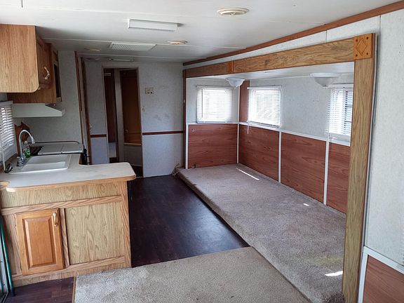 This is a RV trailer for rent in a 55 and older mobile home park waterfront property with 3 docks, rec hall and pool table.