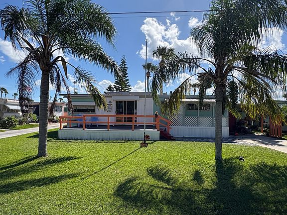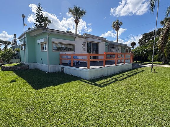 One of the best locations and home in the community!! Some Furniture can be included. Located directly next to the Halifax river walking distance, convenient for fishing, 5 minutes from Daytona Beach Shores and close to all the grocery stores/shopping. Extremely solid structure on a concrete slab 3 feet of the ground, and a solid concrete driveway, never been flooded. This home features: 2024 AC, $20,000 in electric hurricane shutters installed in 2024, 5 year old new composite deck, washer and dryer 2 years old, metal roof also Has been coated, laminate and tile flooring throughout home. Lot Rent is only $565 a month includes water, sewer and trash. PLEASE MAKE SURE TO WATCH VITURAL VIDEO!!