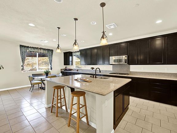 Spacious and inviting single-story home in the highly desirable Gold Ridge community, complete with OWNED solar! Situated on just over 1/3 acre, this 3-bedroom, 2.5-bath home plus den offers a thoughtful layout and plenty of room for the whole family. The open kitchen is the heart of the home and features stunning granite counters, abundant cabinetry, a large island, double ovens, stainless steel appliances, and two pantries-perfect for storage and entertaining. The primary suite is a private retreat with backyard access, dual sinks, a jetted tub, separate shower, and an oversized walk-in closet. Secondary bedrooms each include their own walk-in closets, and the spacious laundry room adds extra convenience with a sink, counters, and cabinetry. Enjoy the versatility of both a finished 1-car and 2-car garage, each with epoxy flooring. Outside, the expansive backyard offers a covered patio and endless potential to create your dream outdoor oasis. All this in a fantastic location close to Travis AFB, Amtrak, commuting routes, parks, walking trails, and within the sought-after Travis Unified School District.