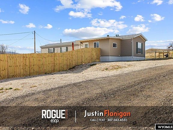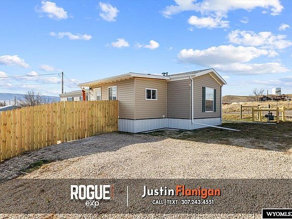 Fully remodeled and move-in ready! This beautifully updated 2 bed, 2 bath mobile home sits on a large lot in a quiet area, Inside you'll find modern finishes, refreshed flooring, new paint, and stylish fixtures throughout. The spacious layout offers comfortable living, and the generous yard provides room to relax, garden, or entertain. If you're looking for affordability without sacrificing comfort or privacy, this one checks all the boxes. Contact Rogue Agents with eXp Realty today to line up your own private showing by calling/texting 307.243.4551