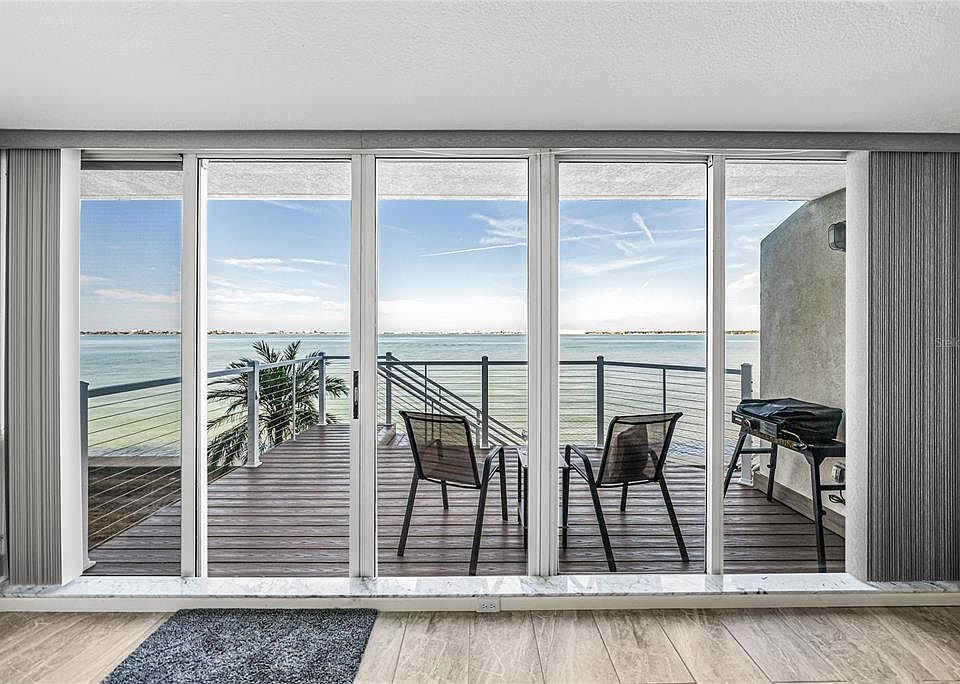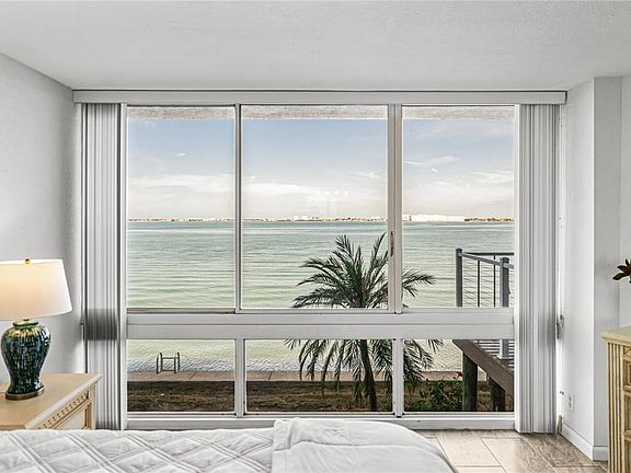 Experience vibrant coastal living at its finest in this beautifully updated and meticulously maintained first-floor condo with a private entrance in the highly sought-after Isla Key community. Overlooking the sparkling waters of Boca Ciega Bay, this rare walk-out unit delivers postcard-perfect views—from morning Gulf breezes to sweeping sunsets over the Bay—all enjoyed right from your oversized waterfront deck. Inside, you’ll find a 2-bedroom split plan + study, two full bathrooms, a renovated kitchen with breakfast bar, a spacious living/dining area, tile flooring throughout, and a dedicated laundry room. The bright and open Living Room showcases floor-to-ceiling windows and a sliding glass door that frames your stunning water view and leads to the deck—your front-row seat to coastal serenity. The Primary Suite offers breathtaking bay views, while the spa-inspired bath impresses with dual shower heads, quartz countertops, generous cabinetry, and a walk-in closet. A double-door Study overlooks the private front walkway, and the Guest Suite features plantation shutters, a walk-in closet, and an upgraded en-suite bath—perfect for hosting guests in comfort. Additional highlights include a laundry room with Electrolux washer & dryer, built-in cabinetry and shelving, covered parking, a convenient mailbox and delivery center, and recreational small watercraft storage near your private rear staircase. This ideal location offers unmatched access to the community pool and tennis courts, plus five beaches within 3 miles, and marinas, golf courses, restaurants, and hotels just minutes away. Coastal living, convenience, and comfort all come together in this exceptional Isla Key residence.