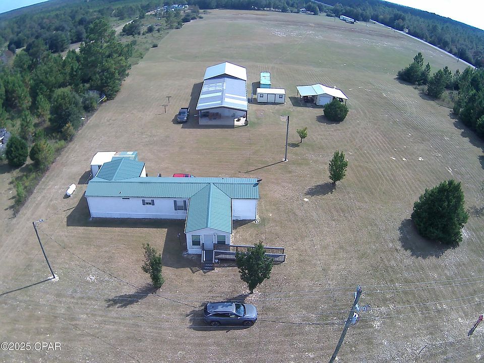 Experience country living at its finest with this expansive rural property. Nestled on 13.46 cleared acres, this 2-bedroom, 2-bath home combines comfort and versatility in a serene setting. The residence sits beside two paved roads on a corner lot, offering easy accessibility and excellent visibility. Large, heated and cooled 3,000 sq ft building with a full bathroom and a roll-up door, ideal for workshop, storage, or additional living space. Some photos have been virtually cleared or staged.