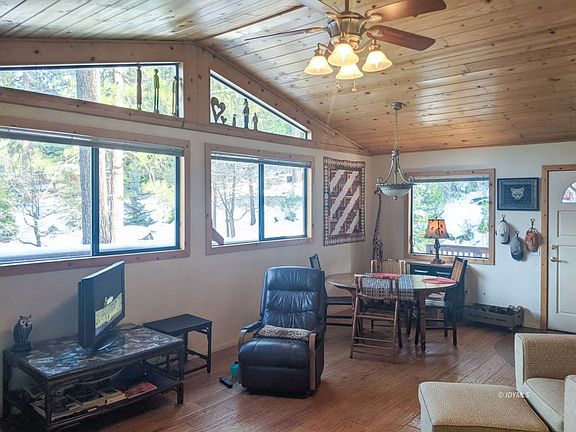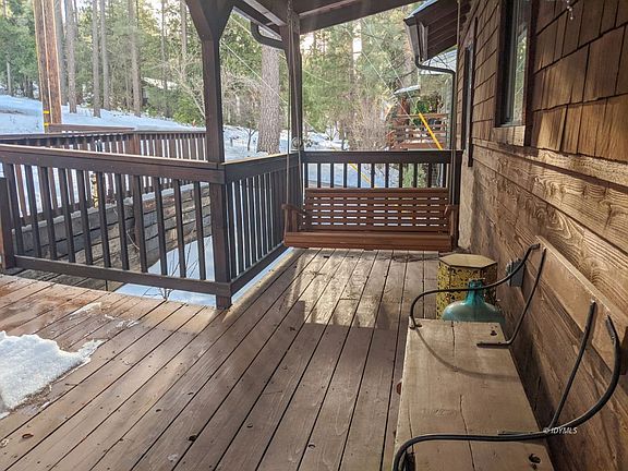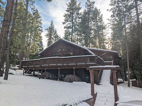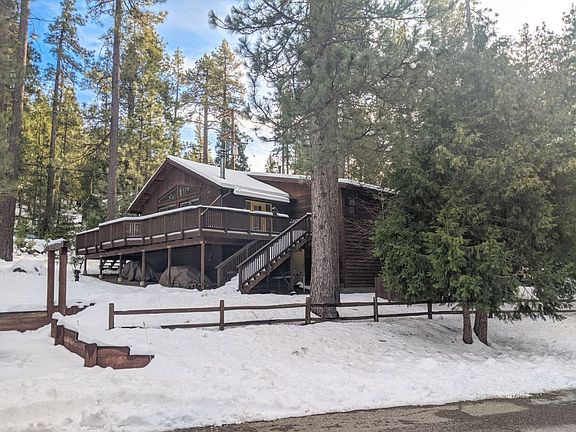 Ready to move in, this 1995 home is solidly built, well insulated and ready to enjoy the mountains. A combination of white walls and pine tongue and groove combine for a bright and open feel with a mountain charm. Forced heat and a freest5anding wood stove provide ample heat. Large windows looking off towards San Jacinto Peak provide lots of light and views of trees and the mountain. 2 bedroom home had a permitted addition making the master suite larger and adding a walk in closet and large ensuite bathroom. A smaller bedroom on the front of the house has opportunity to expand if desired. Large combo full bathroom and laundry room in the hall. Large pantry and functional open concept kitchen with beautiful oak cabinets and granite3 counter tops. Recent landscaping, retaining walls and lower parking pad installed. Decks, roof, asphalt driveway and basic structure in great shape. Partially covered wrap around deck provides ample outdoor space. Large space below the house has concrete floor on part of it with insulation and electrical provides a good workspace, storage or future living space. Triangle lot has 2 parking areas and large flat area for rv parking or future structure.