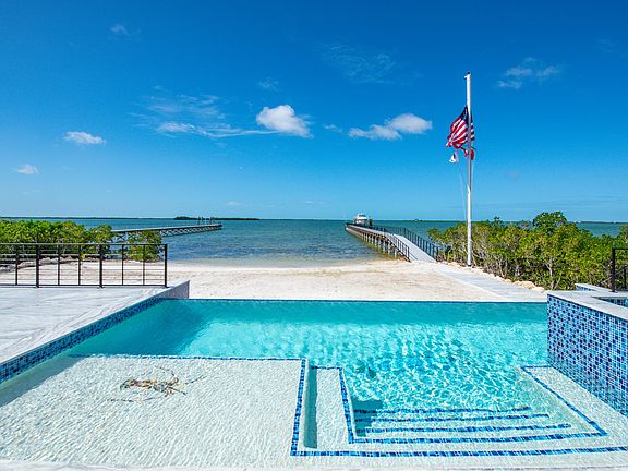Welcome to your tropical paradise on Ramrod Key! This stunning 6,888 square foot home showcases exceptional quality in both construction and finishes, ensuring a luxurious experience from the moment you arrive. With six spacious bedrooms with 6 ensuite bathrooms plus 2 additional half bath, this massive property comfortably accommodates up to 21 guests. The spacious living area features tons of seating arrangements, custom bar, huge dining table with seating up to 14 and another 6 at the eat in counter bar. There is a hotel quality elevator that services each floor. As well as 2 laundry rooms one upstairs and downstairs for your convenience. The expansive master suite features a large bedroom with a private porch, both offering breathtaking views, and endless sunsets. The indulgent master bath complete with a huge soaking tub that invites you to unwind while soaking in the scenery. Step outside to the infinity edge pool, perfect for relaxing under the sun. For boating enthusiasts, the property includes a heavy-duty boat lift on the dock, providing easy access to the Niles Channel and excellent boating opportunities to both the Gulf of Mexico and the Atlantic Ocean. Designed with entertaining in mind, this exquisite retreat is ideal for executive retreats or large gatherings. No detail has been overlooked including, ensuring that your stay will be nothing short of extraordinary. Book your stay today and immerse yourself in luxury, comfort, and stunning natural beauty!