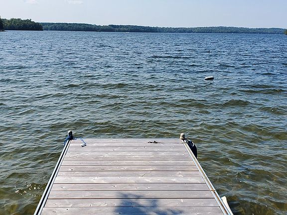 This pristine and classic A frame enjoys a spectacular 120 ft on East Pond. Wide open, level and rare 1.72 acre and existing setback allow for expansion! Excellent maintenance and consistent upgrades over the years makes this move-in ready. Large deck with awning adds to summer living space. Uniquely sandy lakefront, dock, mooring and kayak rack are included. Schedule a showing and see what a beautiful location this is!